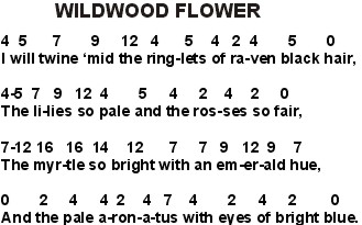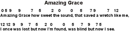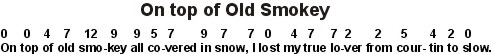The following tabs can be used for any single string of any instrument that has a scale similar to guitar, banjo, etc. The numbers above the lyrics refer to the fret to produce that particluar note - 0 means open string. I've done my best but feel free to make any changes that suit you. Click here for a PDF version you can download and print. The PDF version only has 4 songs but it prints out on regular 8.5" x 11" paper. ![]()