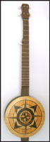 Wooden top banjo head. Boxes with laser printed veneer tops. Clock with cheery veneer face.